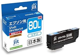 ICC80L ( 増量 )シアン 対応 ジット リサイクル インクカートリッジ エプソン 日本製 JIT-E80CL